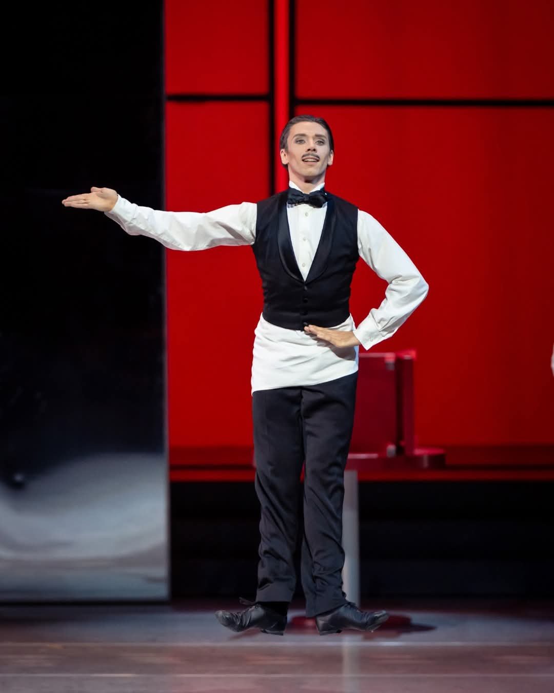 The scene-stealing performance of the waiters was extremely pinpointed and well executed by Gaspare Li Mandri, Kristián Pokorny, a very gifted dancer, and, of course, Géraud Wielick, feeling very much „at ease“ in the role – I don't mean „at ease“ as could be understood by many as careless, too relaxed, and not concentrated.